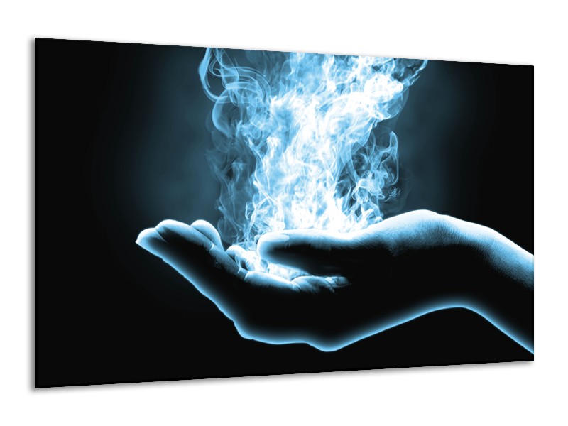 Glasschilderij Hand, Abstract | Blauw, Grijs, Zwart | 120x70cm 1Luik