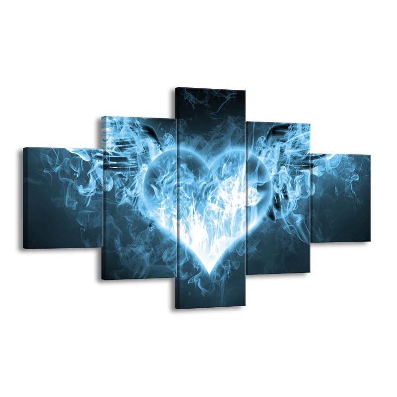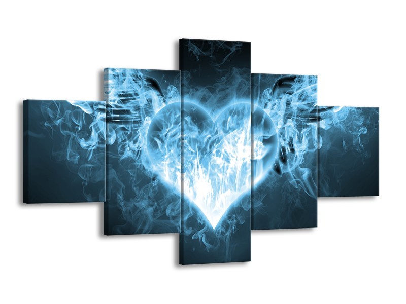 Glasschilderij Hart, Vuur | Blauw, Wit | 125x70cm 5Luik