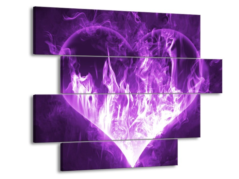 Glasschilderij Hart, Vuur | Paars, Wit | 115x85cm 4Luik