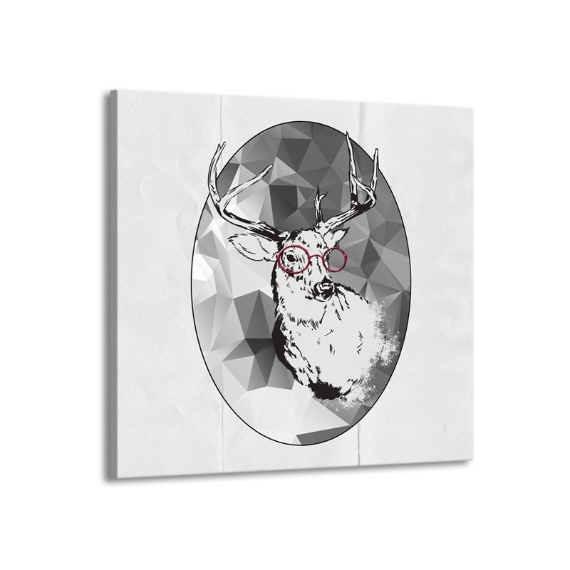 Glasschilderij Hert, Modern | Zwart, Wit | 70x70cm 1Luik