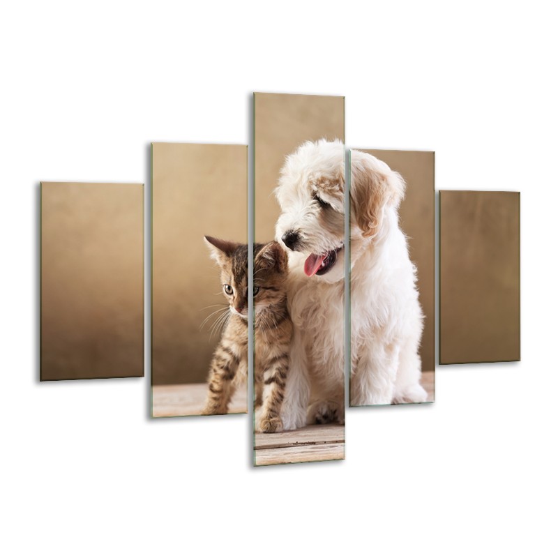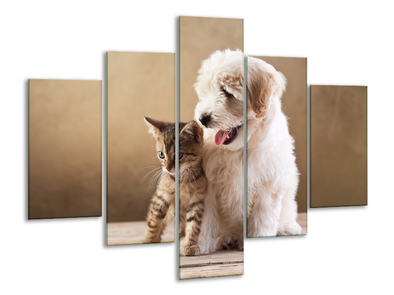 Glasschilderij Hond, Poes | Bruin, Crème | 100x70cm 5Luik