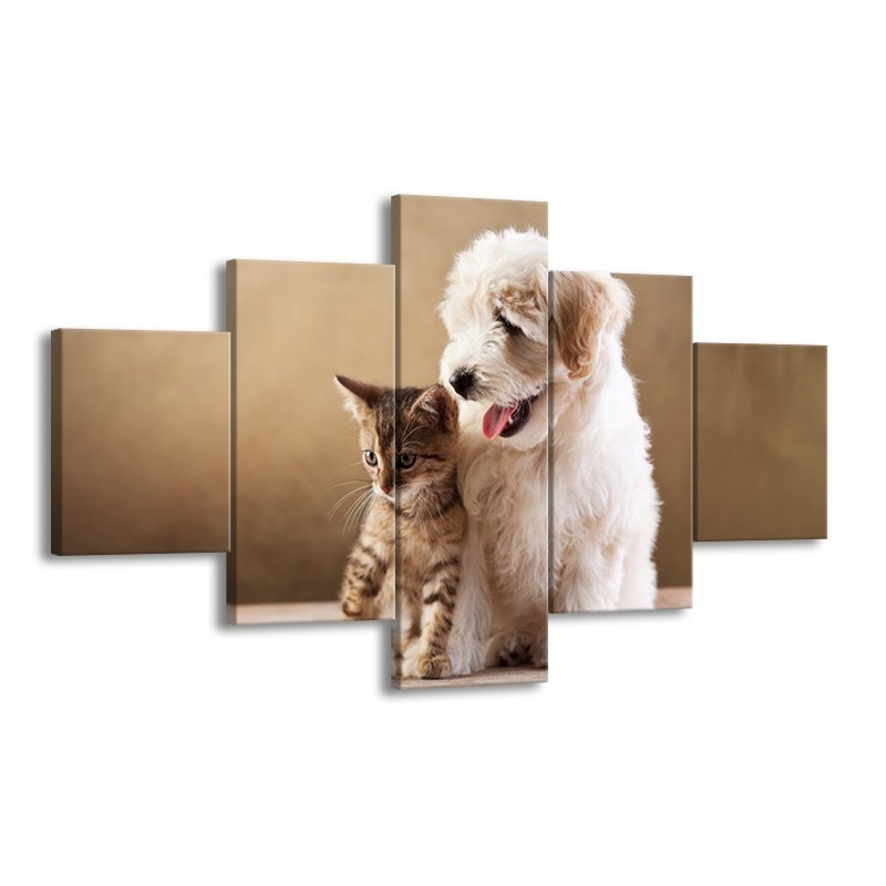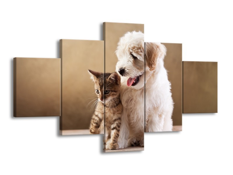 Glasschilderij Hond, Poes | Bruin, Crème | 125x70cm 5Luik