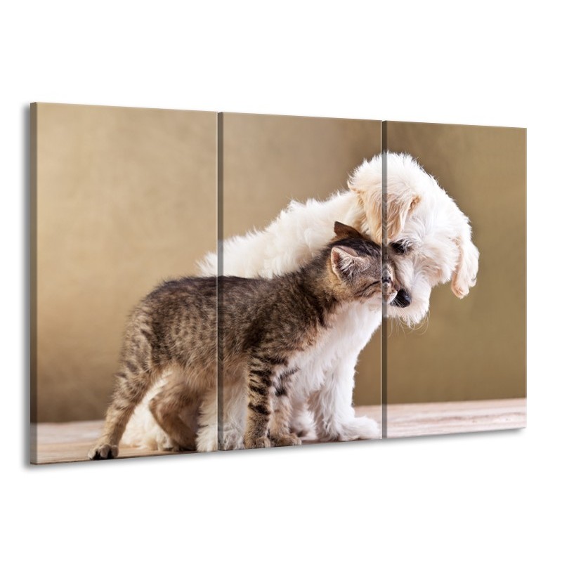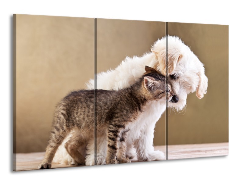 Glasschilderij Hond, Poes | Bruin, Crème | 165x100cm 3Luik