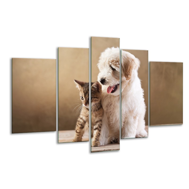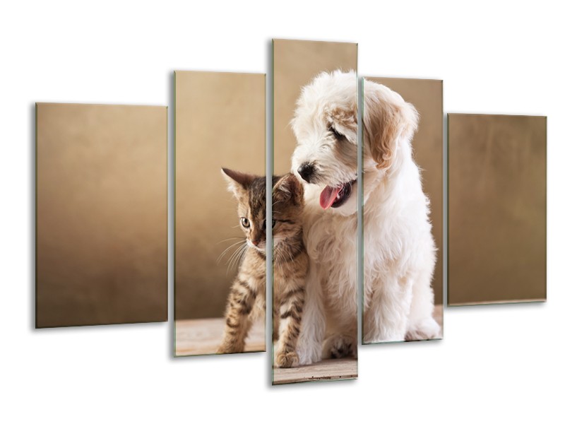 Glasschilderij Hond, Poes | Bruin, Crème | 170x100cm 5Luik