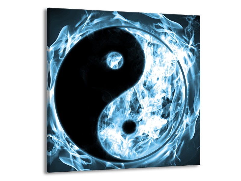 Glasschilderij Jin Jang | Zwart, Grijs, Blauw | 70x70cm 1Luik