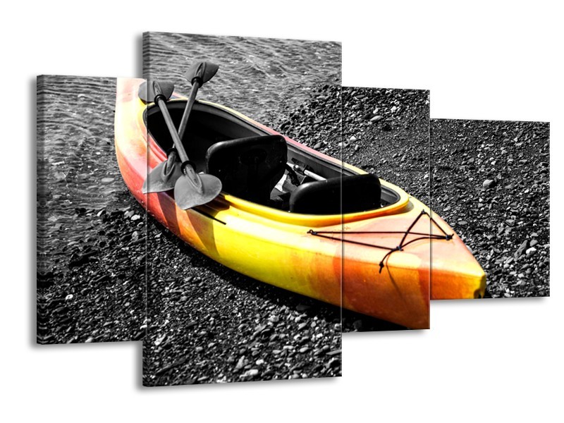 Glasschilderij Kayak, Sport | Grijs, Geel, Oranje | 120x75cm 4Luik