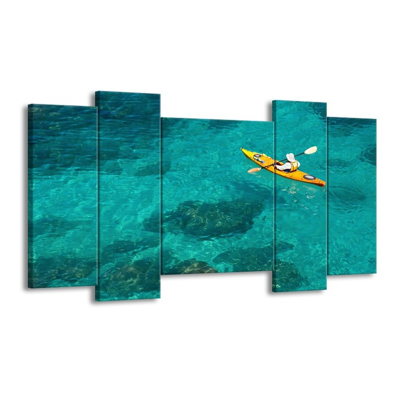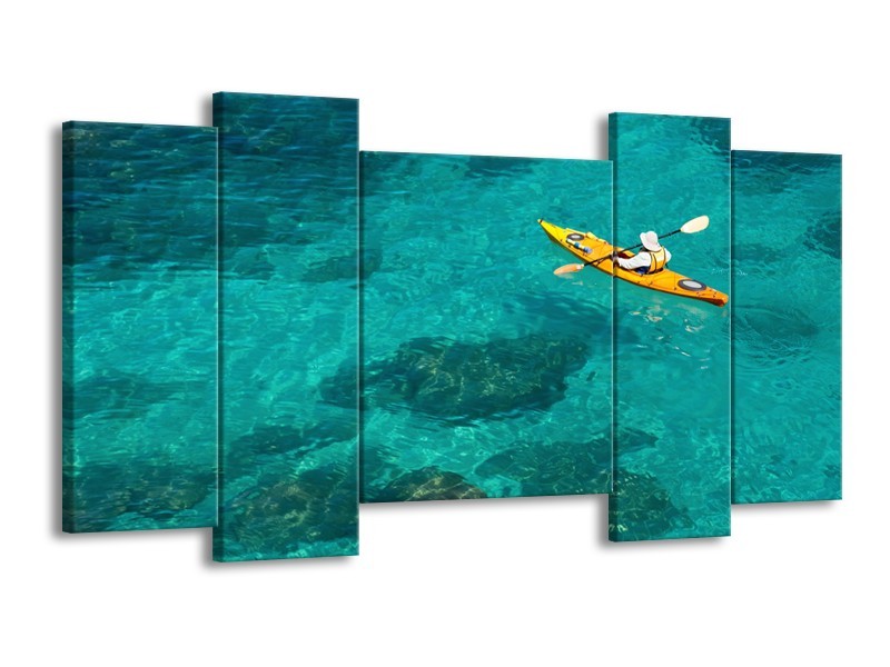 Glasschilderij Kayak, Sport | Turquoise, Geel, Groen | 120x65cm 5Luik