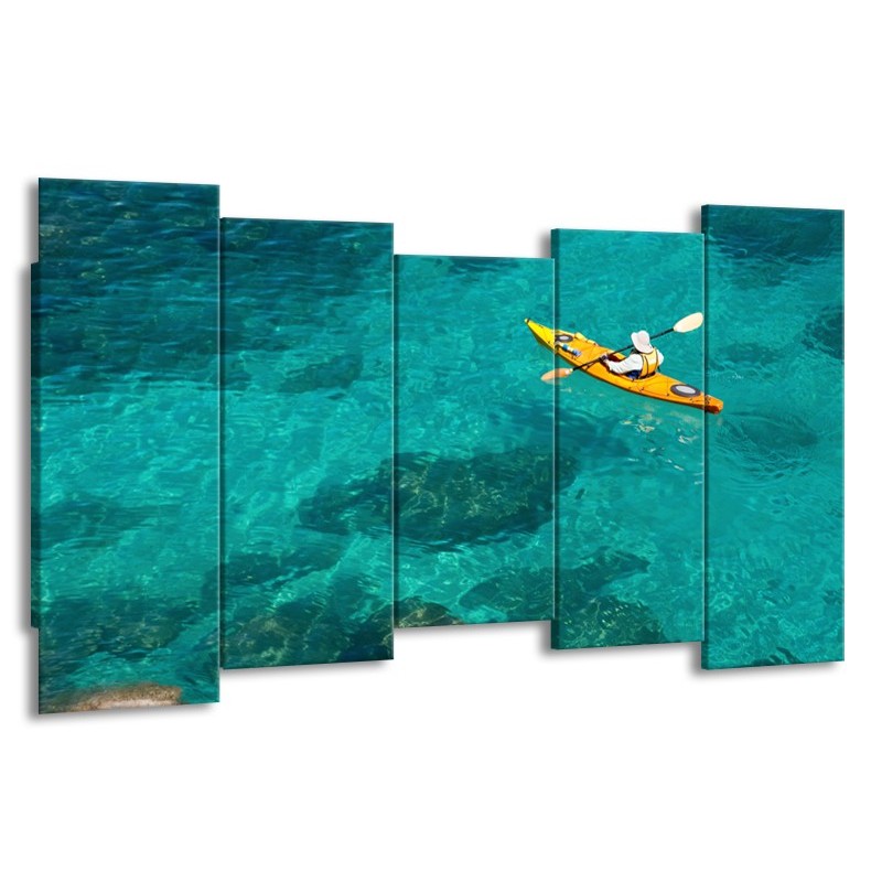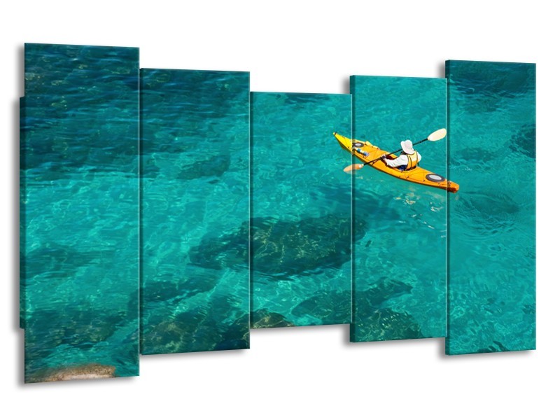 Glasschilderij Kayak, Sport | Turquoise, Geel, Groen | 150x80cm 5Luik