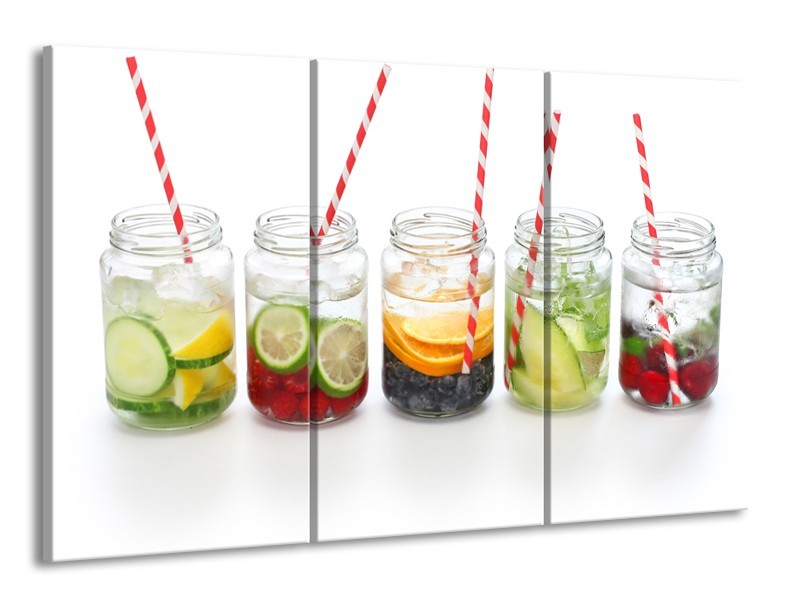 Glasschilderij Keuken, Drinken | Wit, Rood, Groen | 165x100cm 3Luik