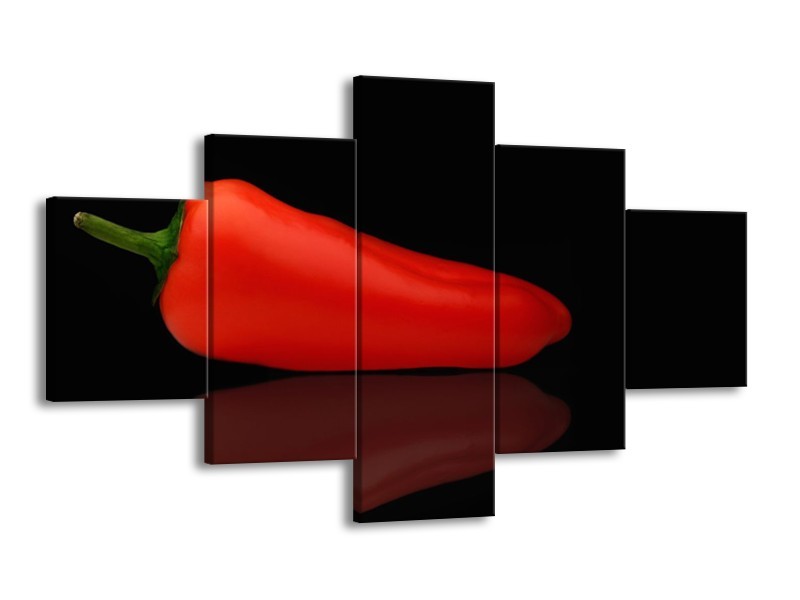Glasschilderij Keuken, Paprika | Rood, Zwart | 125x70cm 5Luik