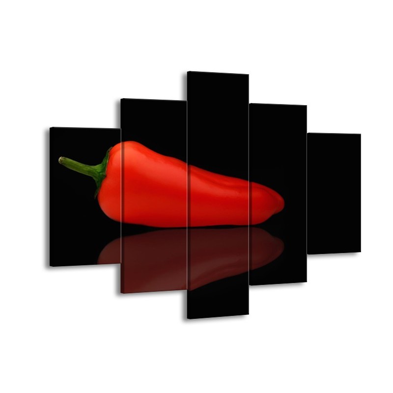 Glasschilderij Keuken, Paprika | Rood, Zwart | 150x105cm 5Luik