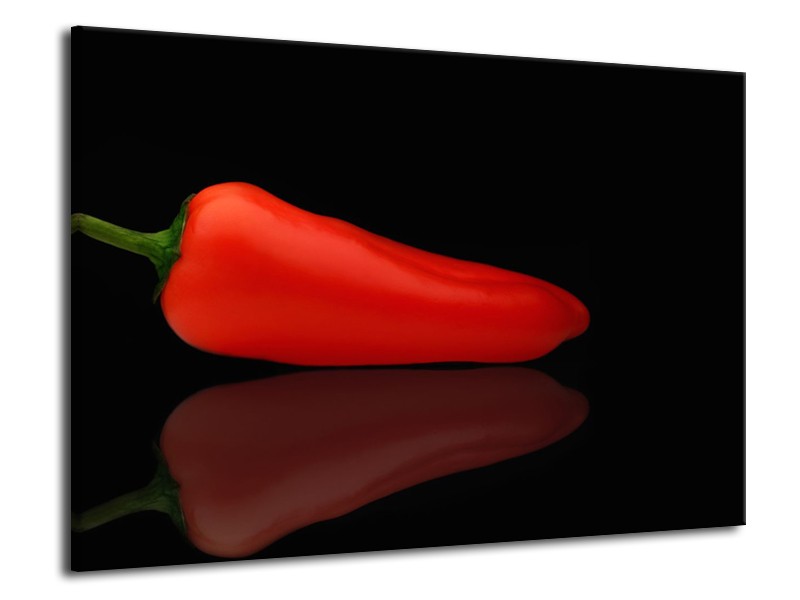 Glasschilderij Keuken, Paprika | Rood, Zwart | 70x50cm 1Luik