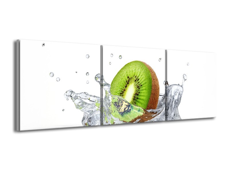 Glasschilderij Kiwi, Keuken | Wit, Groen, Bruin | 150x50cm 3Luik