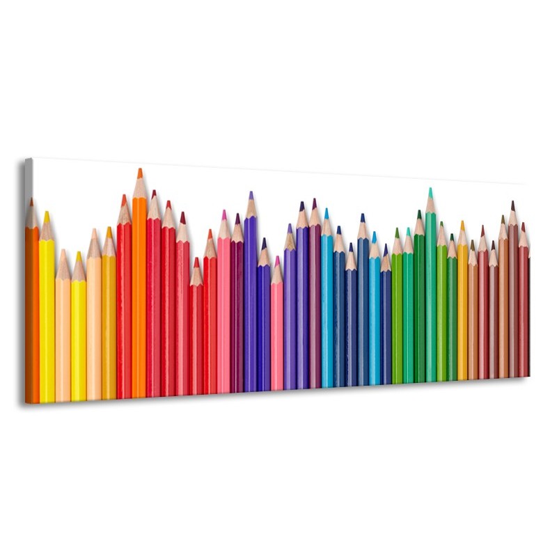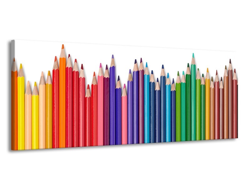 Glasschilderij Kleurpotloden | Wit, Rood, Blauw | 145x58cm 1Luik