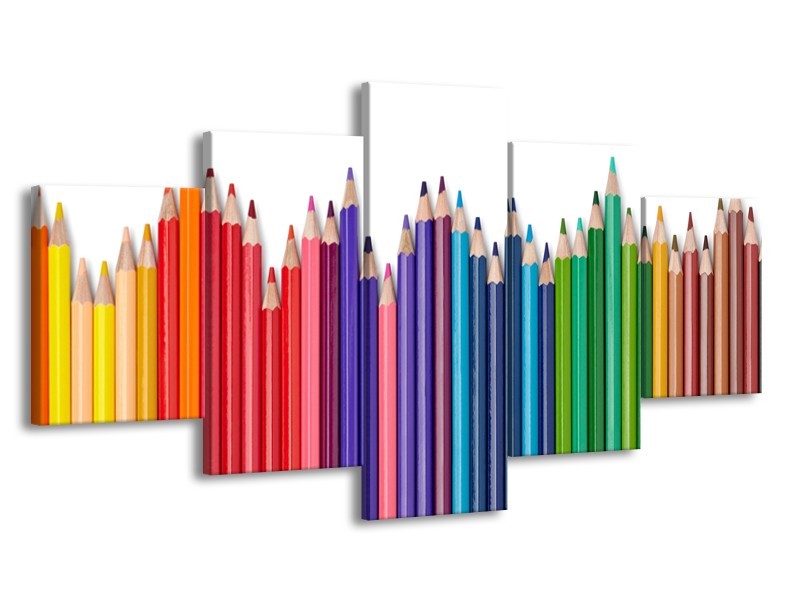 Glasschilderij Kleurpotloden | Wit, Rood, Blauw | 150x80cm 5Luik