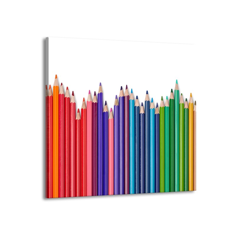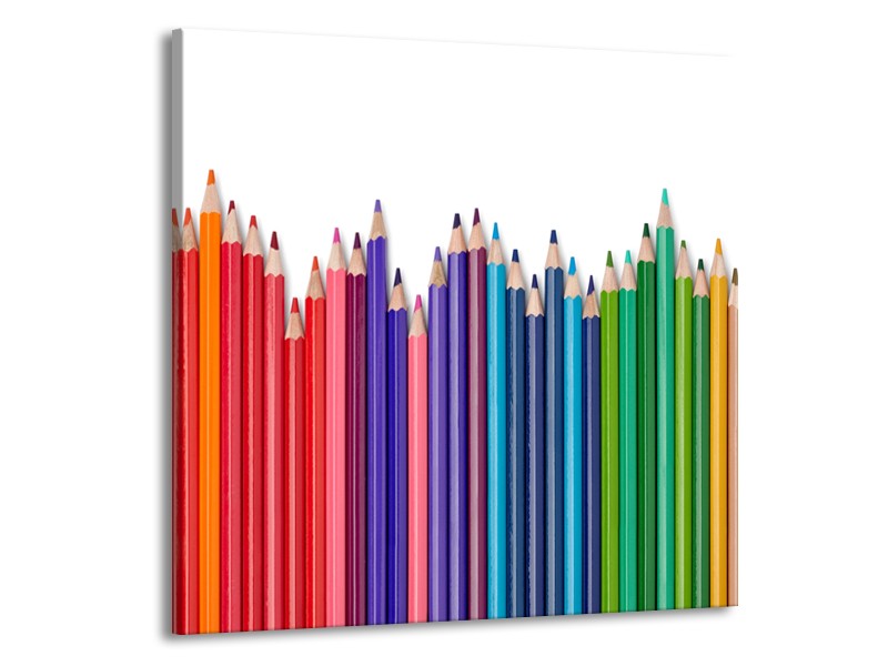 Glasschilderij Kleurpotloden | Wit, Rood, Blauw | 70x70cm 1Luik