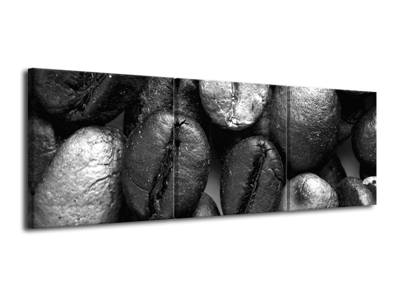 Glasschilderij Kloffiebonen, Keuken | Grijs, Zwart | 120x40cm 3Luik