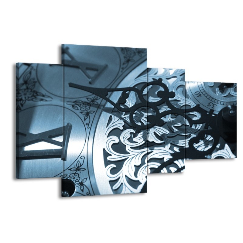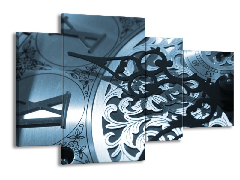 Glasschilderij Klok | Blauw, Grijs, Wit | 120x75cm 4Luik