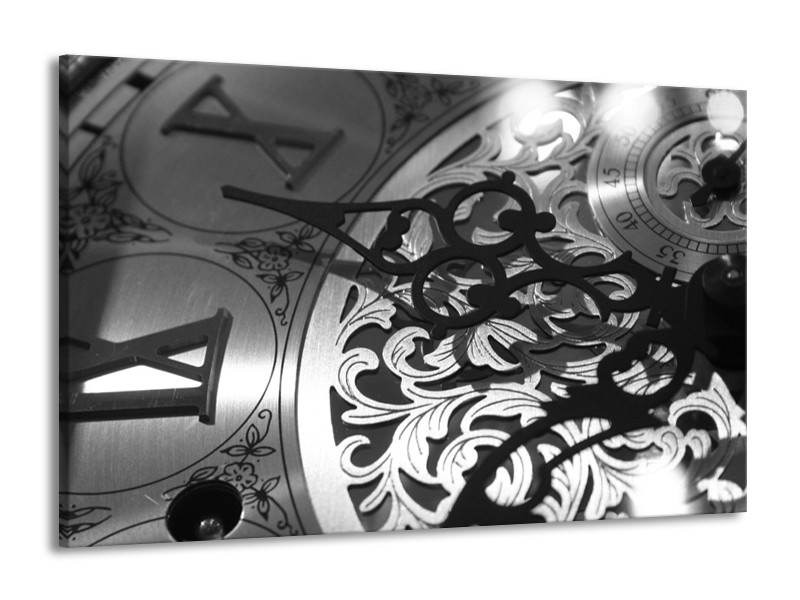 Glasschilderij Klok | Grijs, Zwart | 140x90cm 1Luik