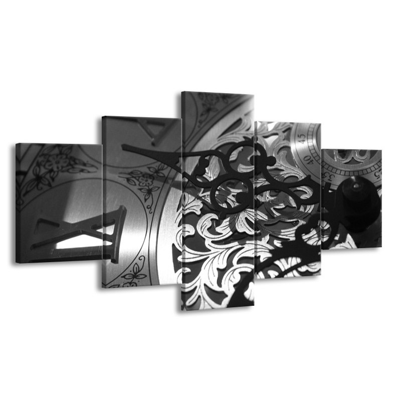 Glasschilderij Klok | Grijs, Zwart | 150x80cm 5Luik