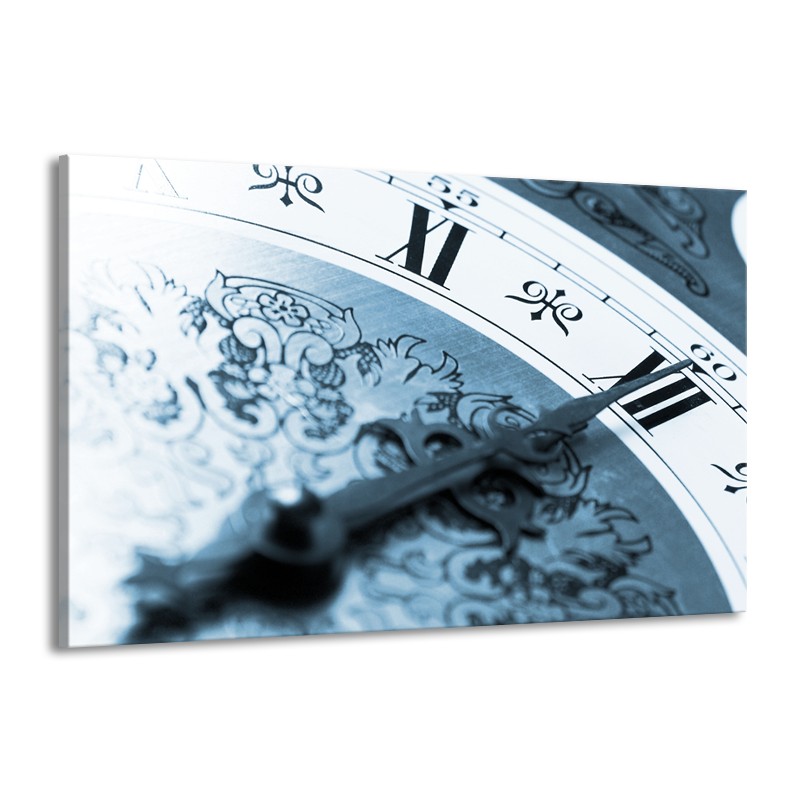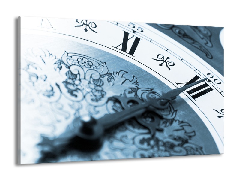 Glasschilderij Klok, Keuken | Blauw, Grijs | 140x90cm 1Luik