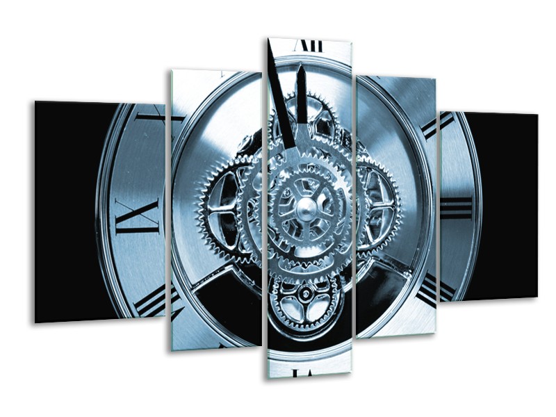 Glasschilderij Klok, Keuken | Blauw, Grijs, Zwart | 170x100cm 5Luik