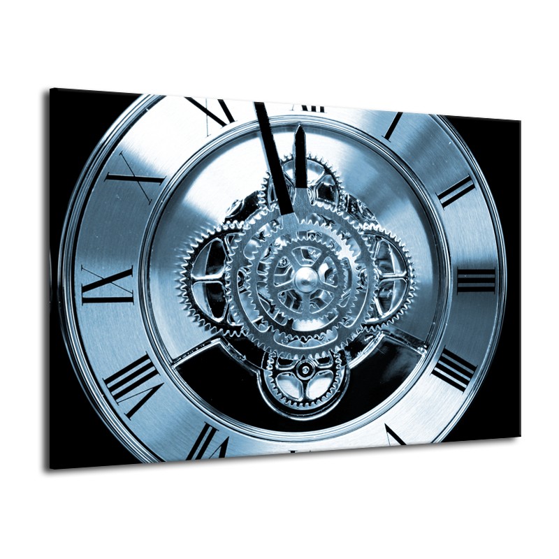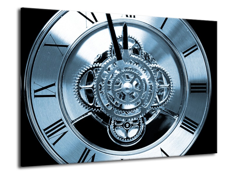 Glasschilderij Klok, Keuken | Blauw, Grijs, Zwart | 70x50cm 1Luik