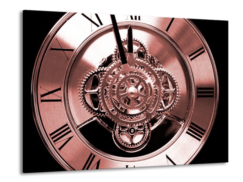Glasschilderij Klok, Keuken | Bruin, Rood, Zwart | 100x70cm 1Luik