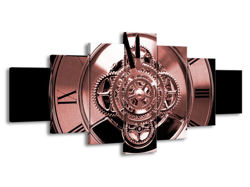 Glasschilderij Klok, Keuken | Bruin, Rood, Zwart | 210x100cm 7Luik