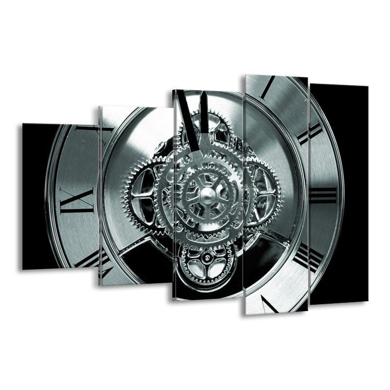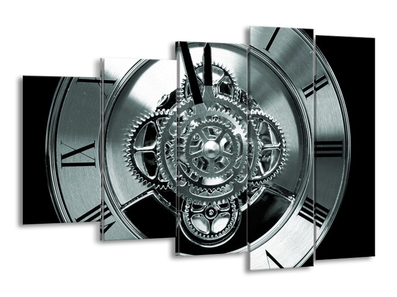 Glasschilderij Klok, Keuken | Grijs, Groen, Zwart | 150x100cm 5Luik