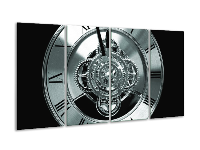 Glasschilderij Klok, Keuken | Grijs, Groen, Zwart | 160x80cm 4Luik