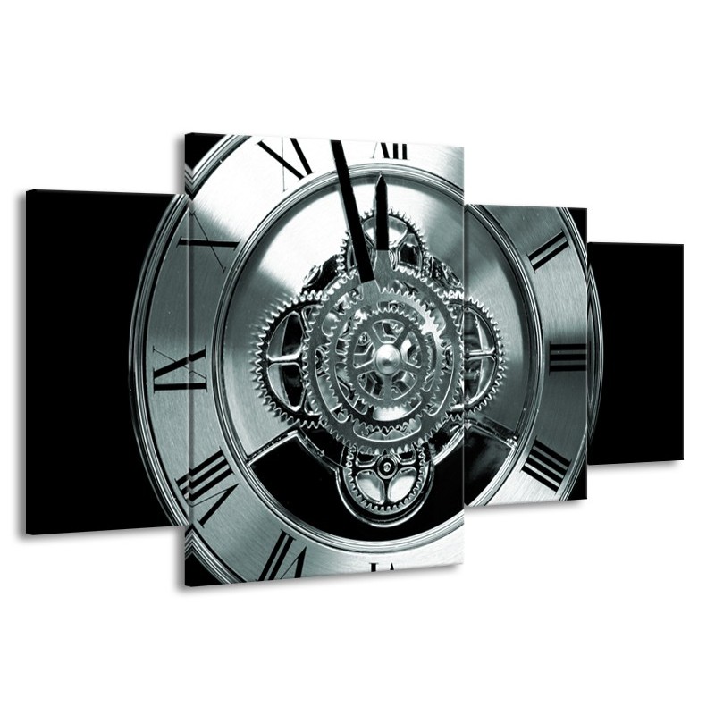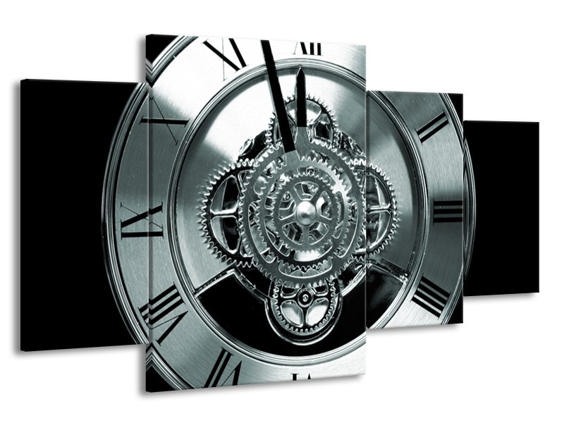 Glasschilderij Klok, Keuken | Grijs, Groen, Zwart | 160x90cm 4Luik