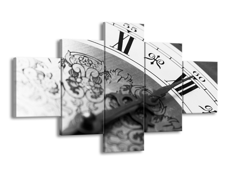 Glasschilderij Klok, Keuken | Grijs, Zwart | 125x70cm 5Luik