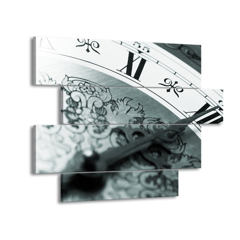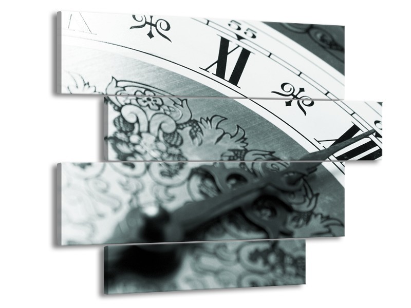 Glasschilderij Klok, Keuken | Grijs, Zwart, Groen | 115x85cm 4Luik