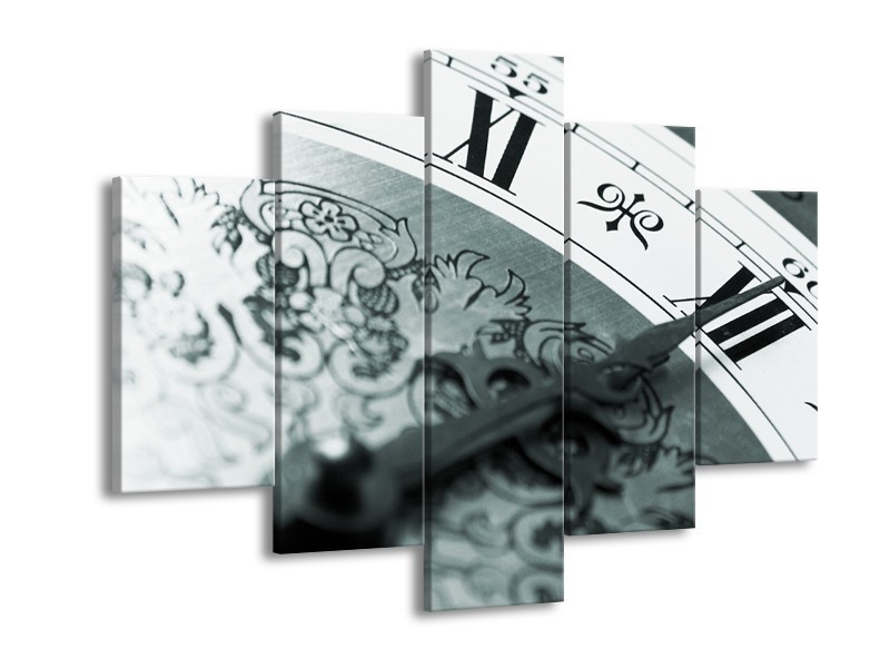 Glasschilderij Klok, Keuken | Grijs, Zwart, Groen | 150x105cm 5Luik