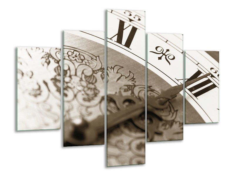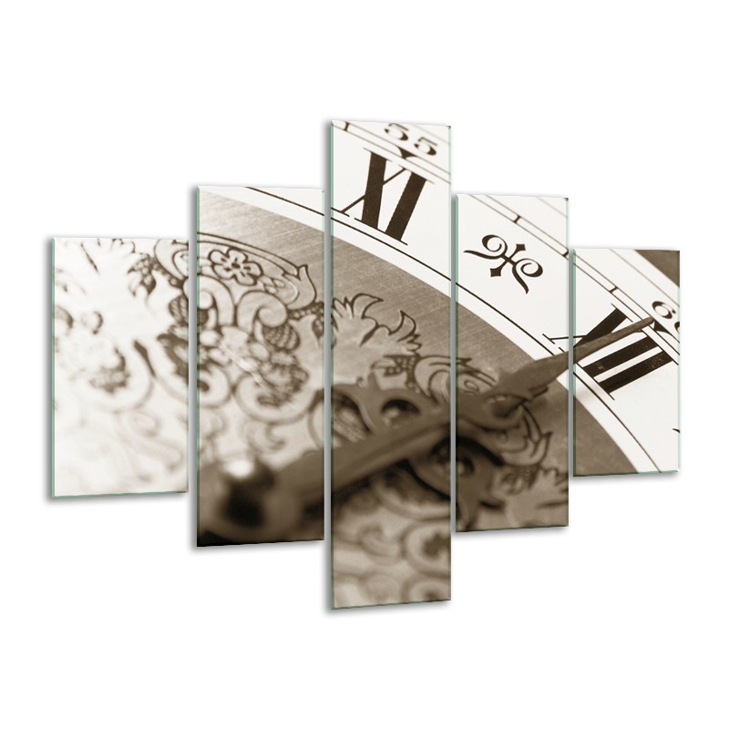 Glasschilderij Klok, Keuken | Sepia | 100x70cm 5Luik