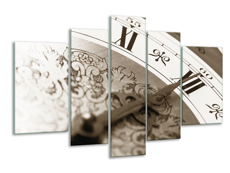 Glasschilderij Klok, Keuken | Sepia | 170x100cm 5Luik