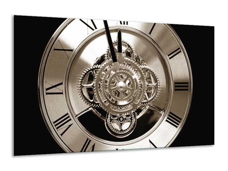 Glasschilderij Klok, Keuken | Sepia, Bruin, Zwart | 120x70cm 1Luik