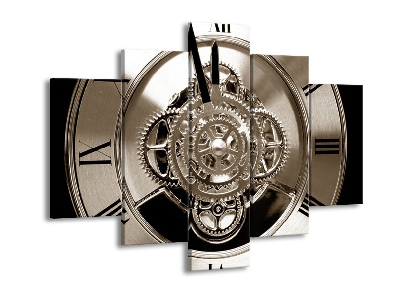 Glasschilderij Klok, Keuken | Sepia, Bruin, Zwart | 150x105cm 5Luik