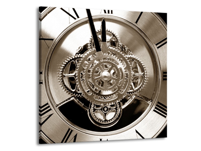Glasschilderij Klok, Keuken | Sepia, Bruin, Zwart | 70x70cm 1Luik