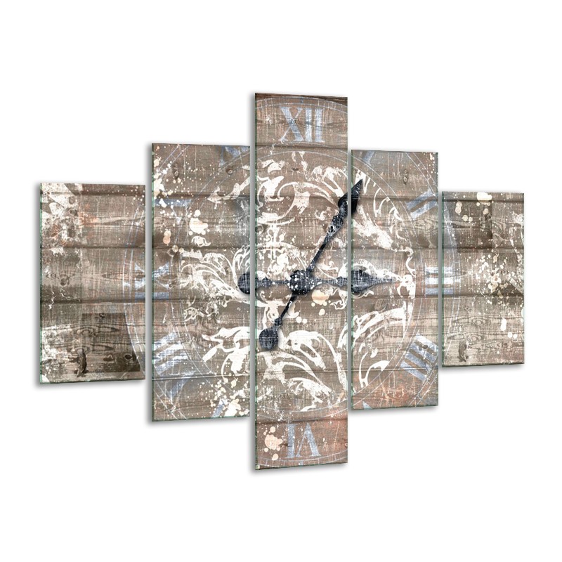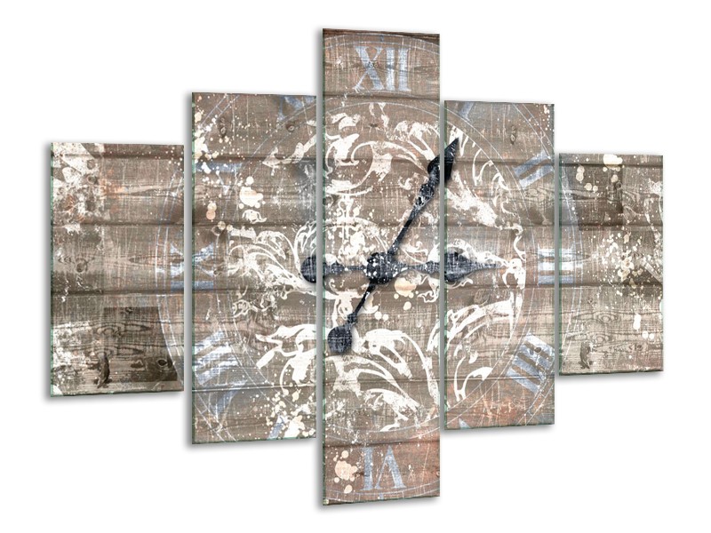 Glasschilderij Klok, Landelijk | Grijs, Crème, Bruin | 100x70cm 5Luik