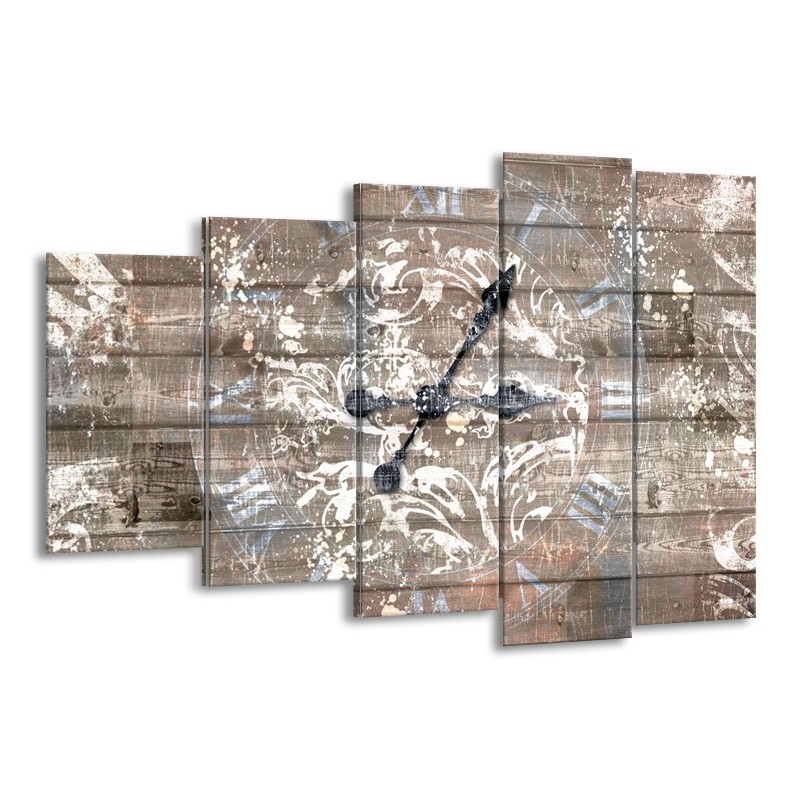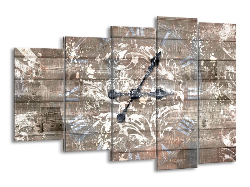 Glasschilderij Klok, Landelijk | Grijs, Crème, Bruin | 150x100cm 5Luik