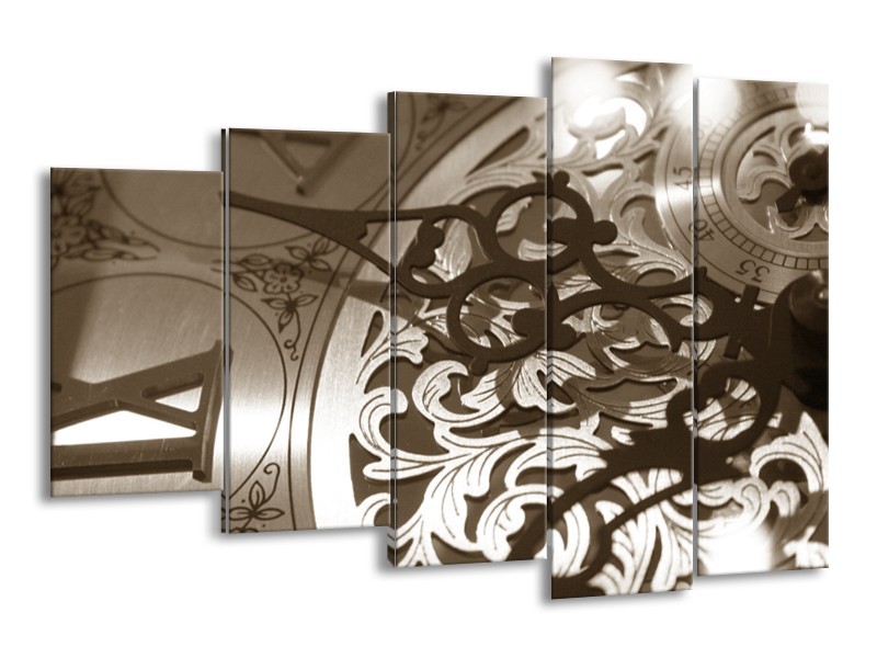 Glasschilderij Klok | Sepia | 150x100cm 5Luik