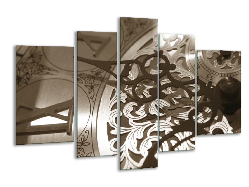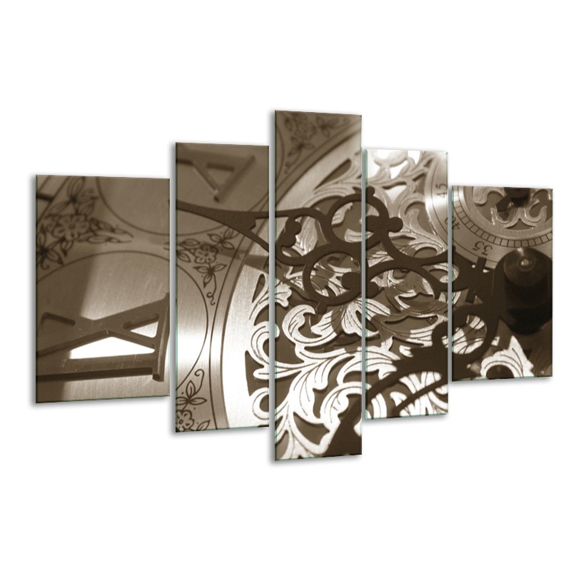 Glasschilderij Klok | Sepia | 170x100cm 5Luik