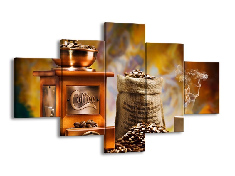 Glasschilderij Koffie, Keuken | Bruin, Geel, Oranje | 125x70cm 5Luik