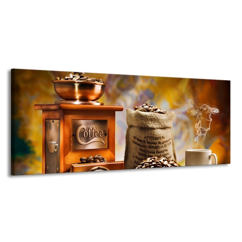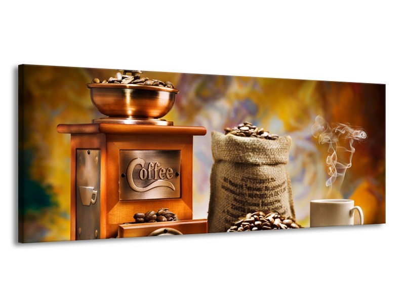 Glasschilderij Koffie, Keuken | Bruin, Geel, Oranje | 145x58cm 1Luik