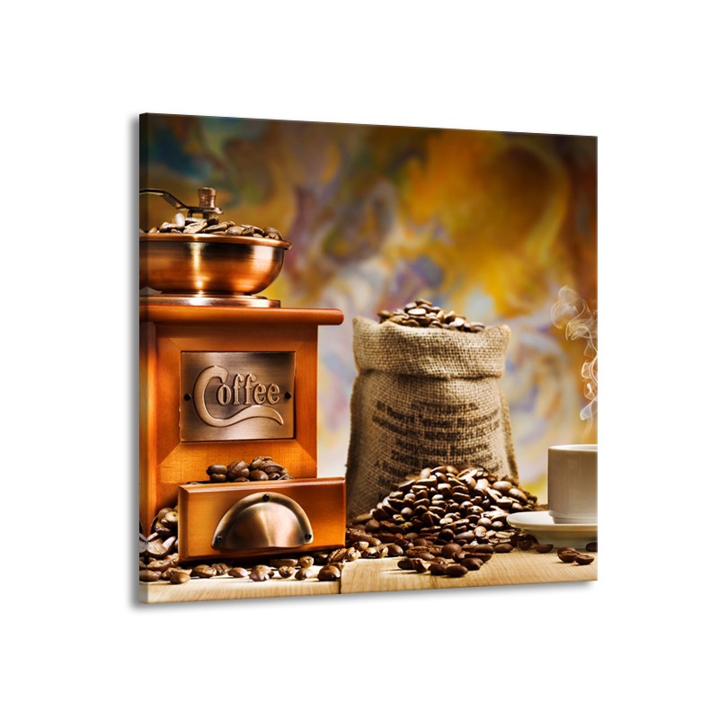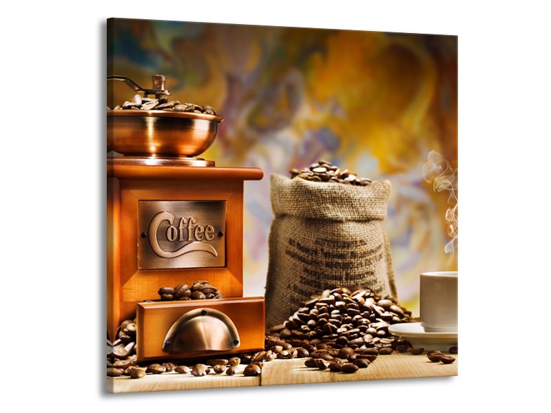Glasschilderij Koffie, Keuken | Bruin, Geel, Oranje | 70x70cm 1Luik
