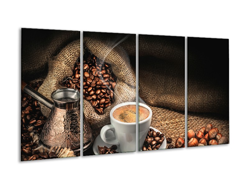 Glasschilderij Koffie, Keuken | Bruin, Geel, Wit | 160x80cm 4Luik