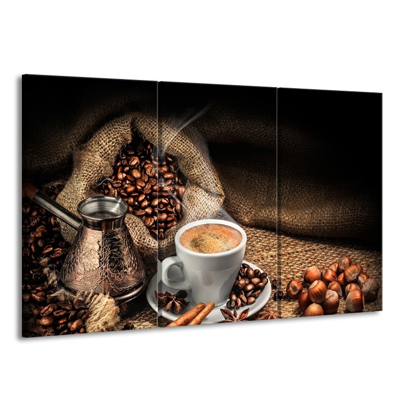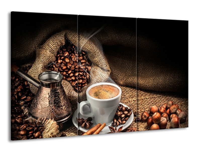 Glasschilderij Koffie, Keuken | Bruin, Geel, Wit | 165x100cm 3Luik