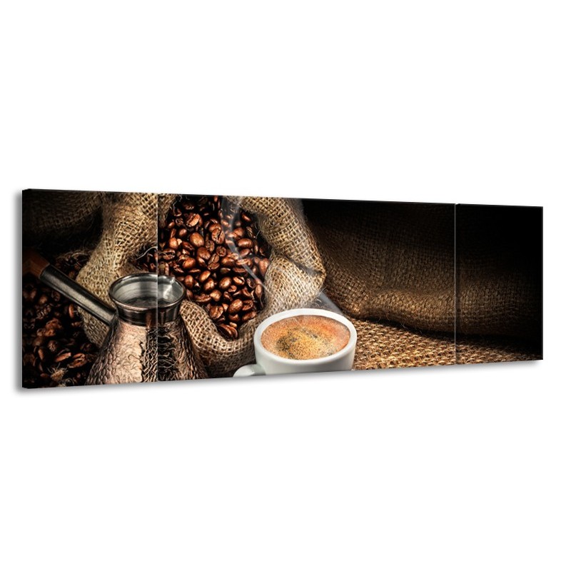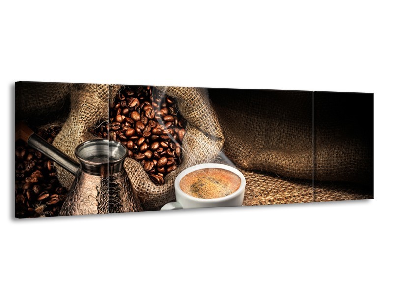 Glasschilderij Koffie, Keuken | Bruin, Geel, Wit | 170x50cm 3Luik